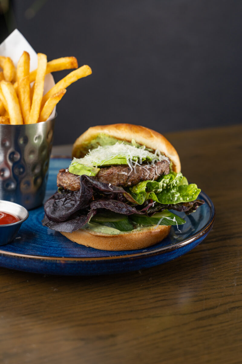 Try out the Cherry Blossom Cocktail feat. Tito’s Vodka and guava. Try it with their Chef’s Burger: Green Goddess Burger with cucumbers, parmesan, avocado, and green goddess aioli.